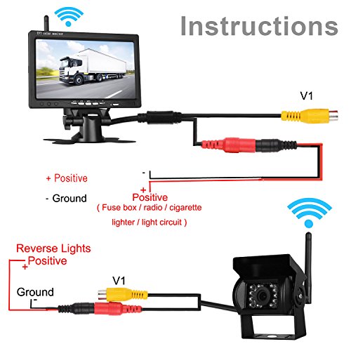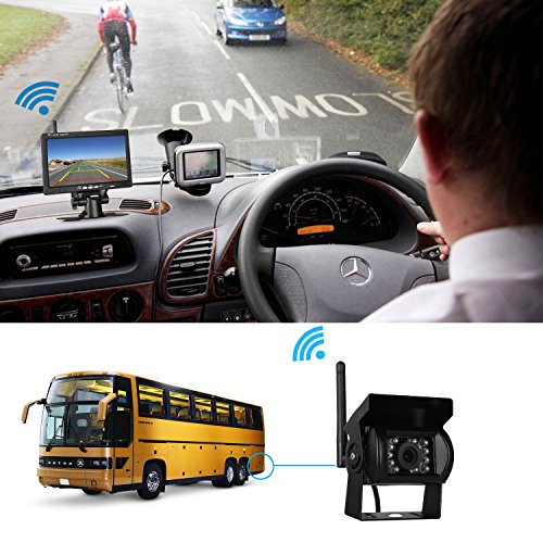 Wireless Backup Camera,Rear View Camera and Monitor Kit Waterproof Parking Assistance System for Car/Truck /Mini Van/Caravan / Trailers/Camper with 7″ HD LCD Night Vision RC 12V-24V Accfly (L)